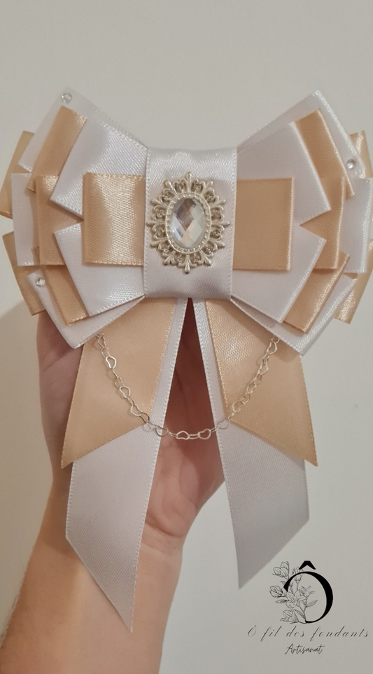 Noeud Ribbon Lightstick Blanc, Doré & Gris